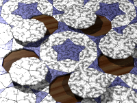 La tassellatura originale di Penrose (pentagoni, rombi, stelle, corone)